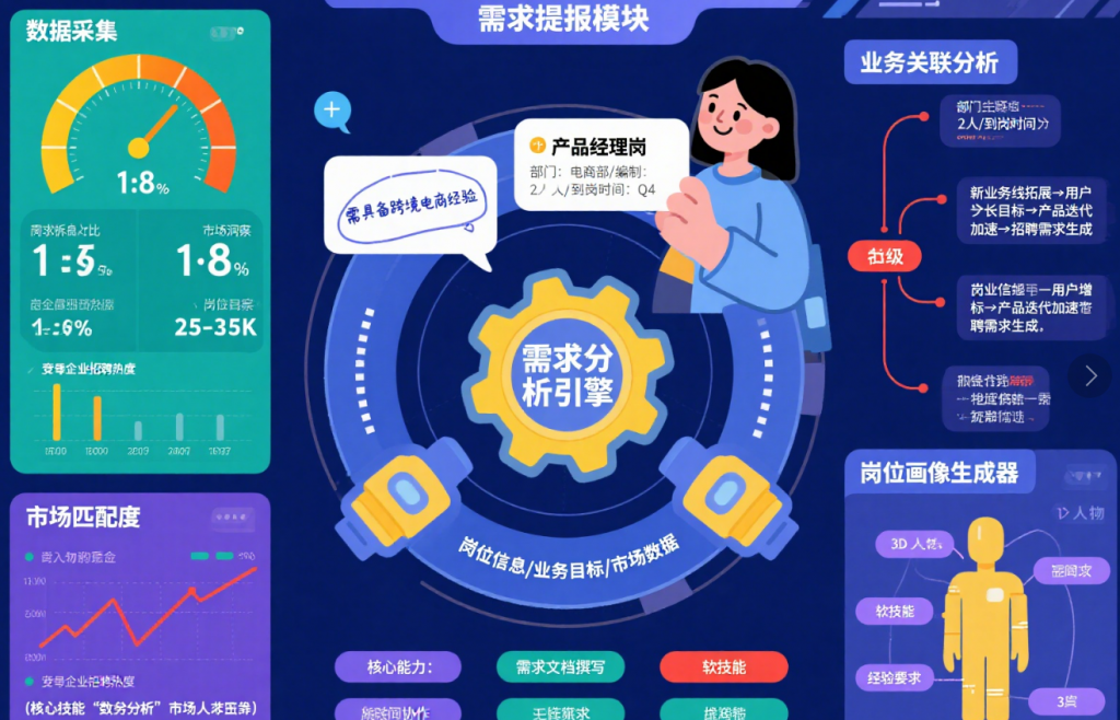 在 2025 年企业数字化转型深化的背景下,人力规划正从 “经验驱动” 转向 “数据驱动”。然而,多数企业仍面临招聘需求分析困境:部门提报需求凭 “感觉”,未结合业务目标与人力数据,导致 “招非所需”;跨部门需求缺乏统一标准,资源向非核心业务倾斜;需求分析滞后于业务变化,旺季人手不足、淡季人员冗余成为常态。