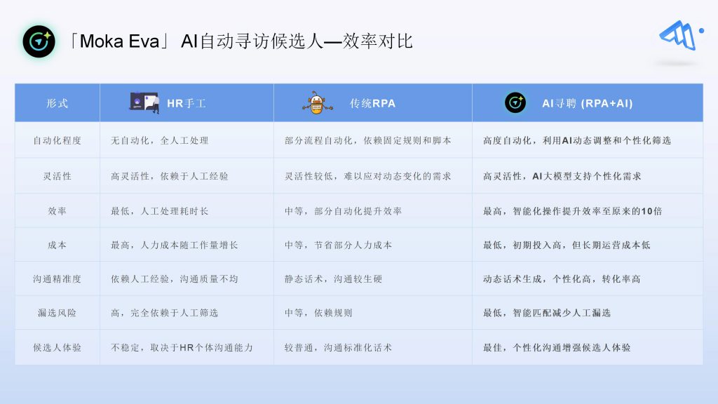 招聘 AI 工具并非替代人工,而是通过 “AI 初筛 + 人工复核” 的模式,平衡简历智能筛选与初评的效率与精准度。HR 的核心作用体现在两方面:一是合理设定筛选规则,需基于对岗位的深度理解,明确 “必备条件” 与 “优先条件”,避免规则过严导致人才遗漏,或过松增加筛选成本;二是对工具推荐的高匹配候选人进行人工复核 —— 关注候选人项目经历的细节逻辑、职业发展轨迹与岗位的契合度,弥补算法在 “文化适配性、创新潜力” 等隐性维度判断上的局限。