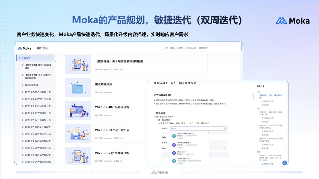 Moka 为中大型企业提供支持OKR、KPI、360度考核等多种模式的一体化绩效管理解决方案,配合AI面谈、智能识人等能力,让绩效管理从填表打分升级为持续对话与成长。